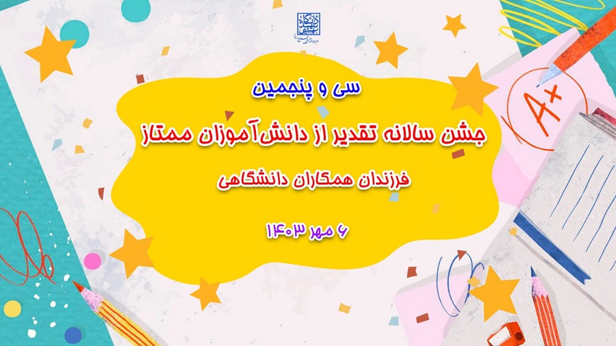 سی و پنجمین جشن سالانه تقدیر از دانش‌آموزان ممتاز همکاران دانشگاه شهید بهشتی در سال 1403 همراه با جشنواره فرهنگی، روز جمعه 6 مهرماه برگزار می‌شود.