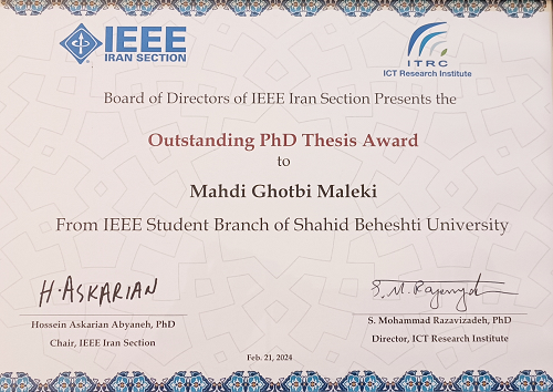 به گزارش دانشکده مهندسی برق- قدرت آقای مهدی قطبی ملکی، دانش آموخته دکتری مهندسی برق - قدرت در چهارهمین دوره جوايز بخش ايران IEEE عنوان "رساله شایسته تقدیررا کسب نمودند.